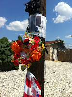 The memorial post (above) stood near Barrera's house. Photo by Olivia Suarez |