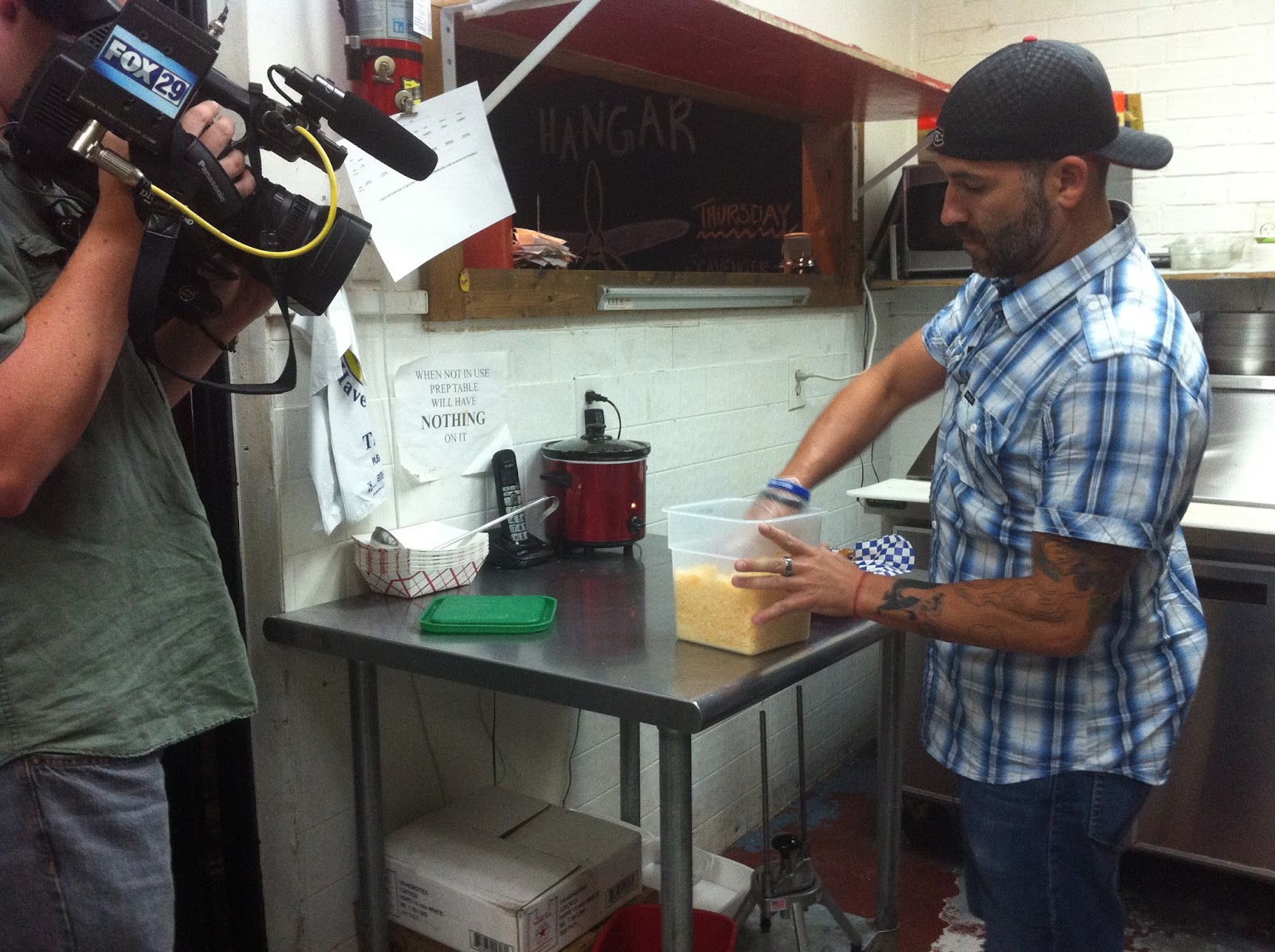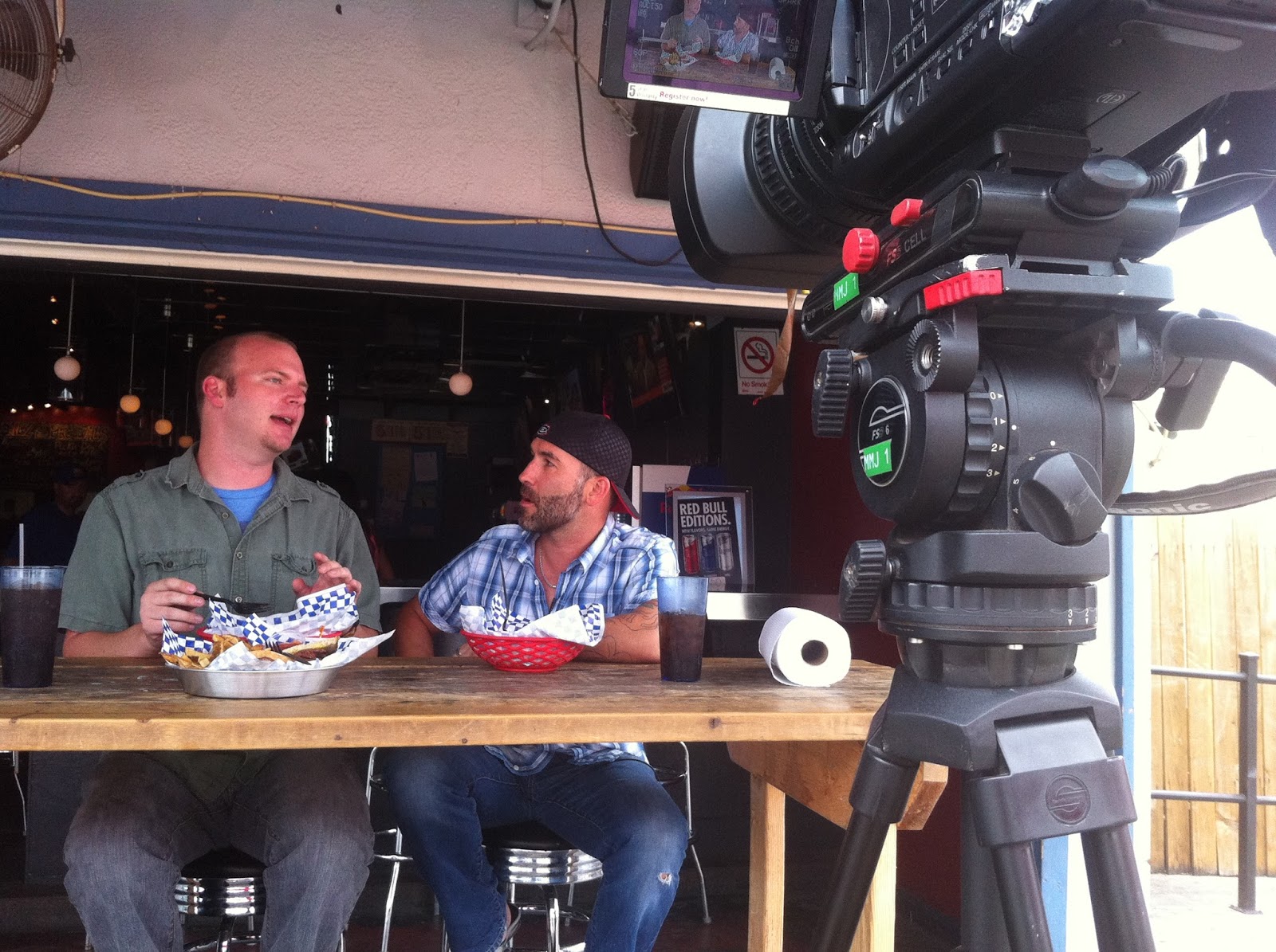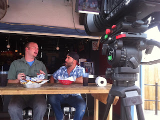 When we got to the bar, we met the owner, Mark "Frenchy" Groleau, a French Canadian ex-pat who moved to San Antonio over 13 years ago for business reasons. The former Montreal native said that he had his mom help him develop the menu with Canadian dishes recently. We went into the kitchen to shoot how poutine was made, as well as their pulled pork sandwich. This B-roll would accompany the one-on-one interview with Groleau and the two-shot cutaway featuring JT.